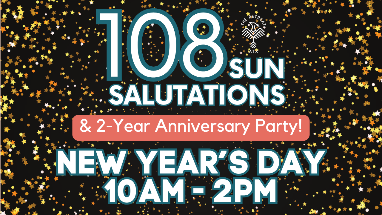 It’s TIME for our annual New Year’s Day 108 Sun Salutations practice, followed by a community potluck brunch - a tradition in our community since 2016! We’ll also be joining with Flora to celebrate our 2 year anniversary at The Retreat!